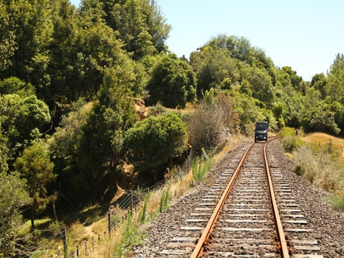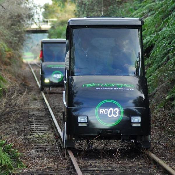 As with Forgotten World Adventures, a lease was eventually taken out on the derelict, station-less route and plans were drawn up for self drive “Rail Cruisers”, a concept they claim is unique to New Zealand. These cruisers are designed specifically for this role, and credit where credit’s due, they seem to have pioneered the concept. They are petrol powered, but unlike their Taranaki cousins their speed and following distances are largely regulated by an onboard computer, requiring only emergency braking from the driver. Also unlike the Forgotten World versions these have drop-down weather-proof sides and built in heaters for chilly days.